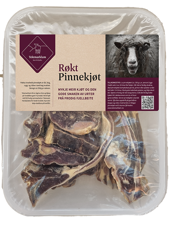 Røyka pinnekjøt, laga av lam som kjem rett fra fjellbeite i Telemark.